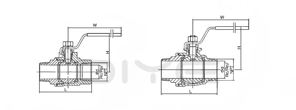Úsáidtear an comhla liathróid cruach dhosmálta 2PC le snáitheanna fireann-baineann, mais-tháirgthe ag an tSín DIYE VALVE, go príomha le haghaidh rialú ar-uaire na meáin lena n-áirítear uisce, gal, táirgí ola, aer comhbhrúite, gás nádúrtha, aigéad lag, alcaile lag agus sreabhán glan.