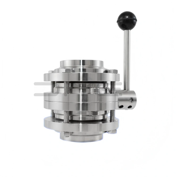 Fostaíonn an Comhla Féileacán Sláintíochta 3-Píosa teicneolaíocht meaisínithe CNC ard-chruinneas, ag baint úsáide as cruach dhosmálta préimhe SUS304 (1.4301) nó SUS316L (1.4404), le lamháltais meaisínithe rialaithe laistigh de ± 0.01mm. Tá na dromchlaí istigh agus seachtracha araon snasta le scáthán, le garbh an bhalla istigh de Ra≤0.4μm (is féidir cruinneas a mhéadú de réir mar is gá), deireadh a chur le coirnéil marbh sláintíochta. Buaileann sé le caighdeáin GMP agus EHEDG agus tacaíonn sé le glanadh CIP ar líne agus steiriliú gaile ardteochta SIP.